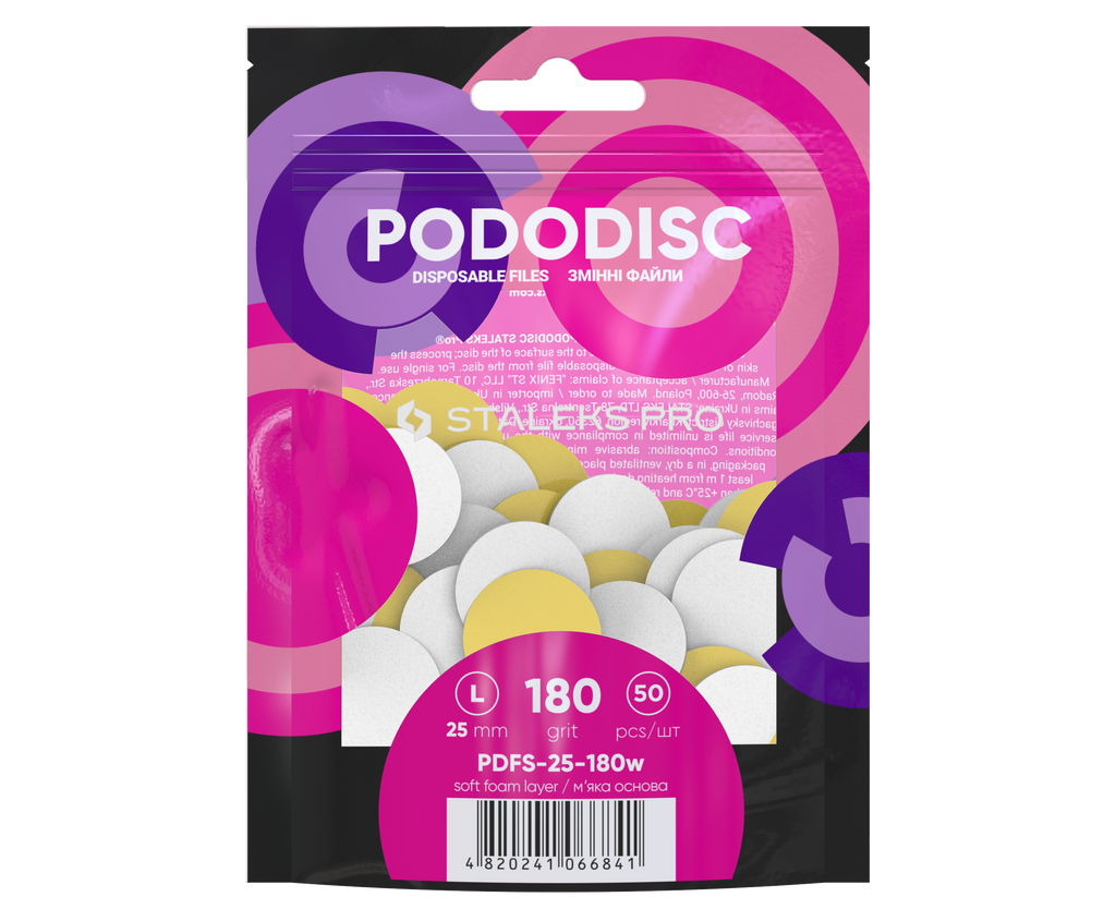 STALEKS Maināmi faili uz mīksta pamatā pedikīra diskam L 180 grit, balts (50 gb.)[PDFS-25-180W]