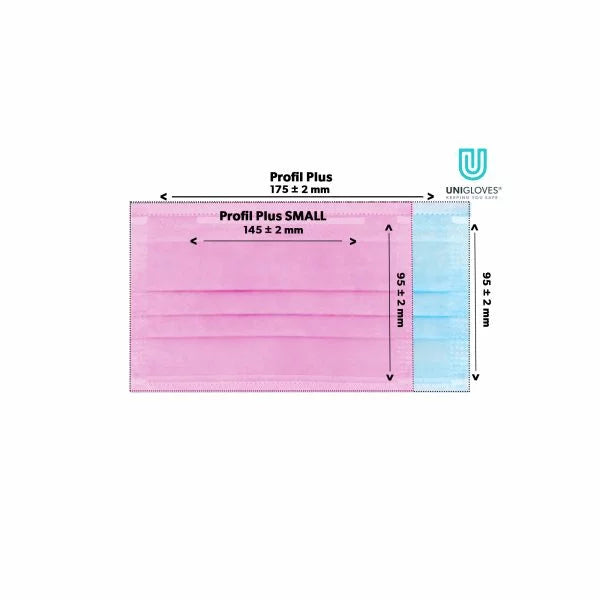 UNIGLOVES Medizinische Gesichtsmaske mit Gummi PROFIL PLUS SMALL SCHWARZ 3-lagig, 50 St.